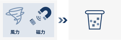 破砕したスクラップは風力・磁力選別にてさらに細かく二次選別いたします。
